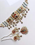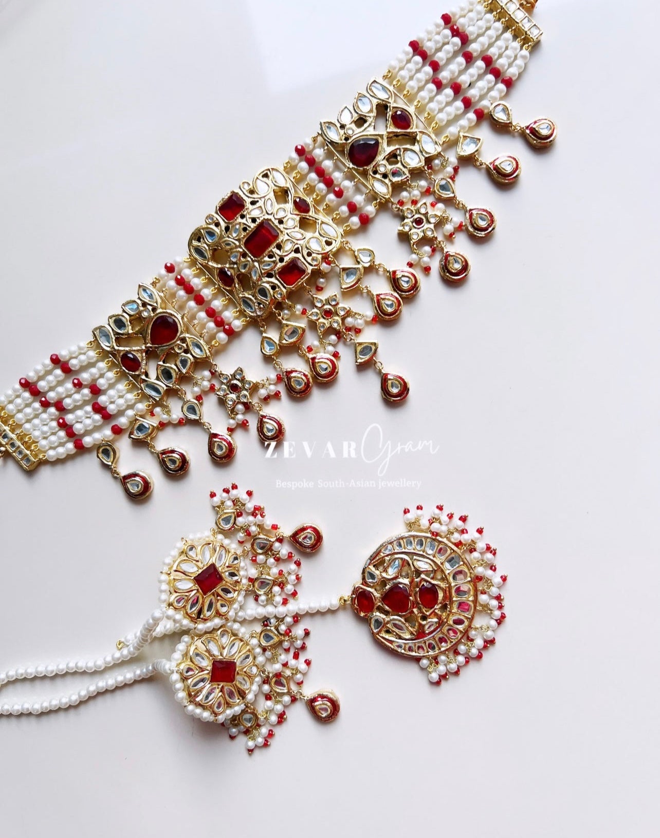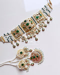 Arina Choker is fully handcrafted in gold-plated thappa kundan embellished with semiprecious stones and pearls.