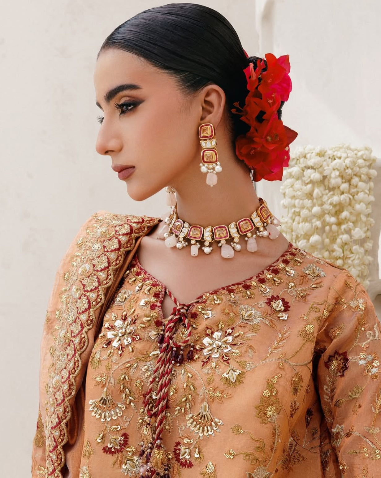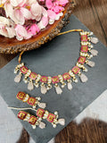 Exquisitely handcrafted polki necklace set by our experienced artisans , embellished with zircon stones and semiprecious beads.