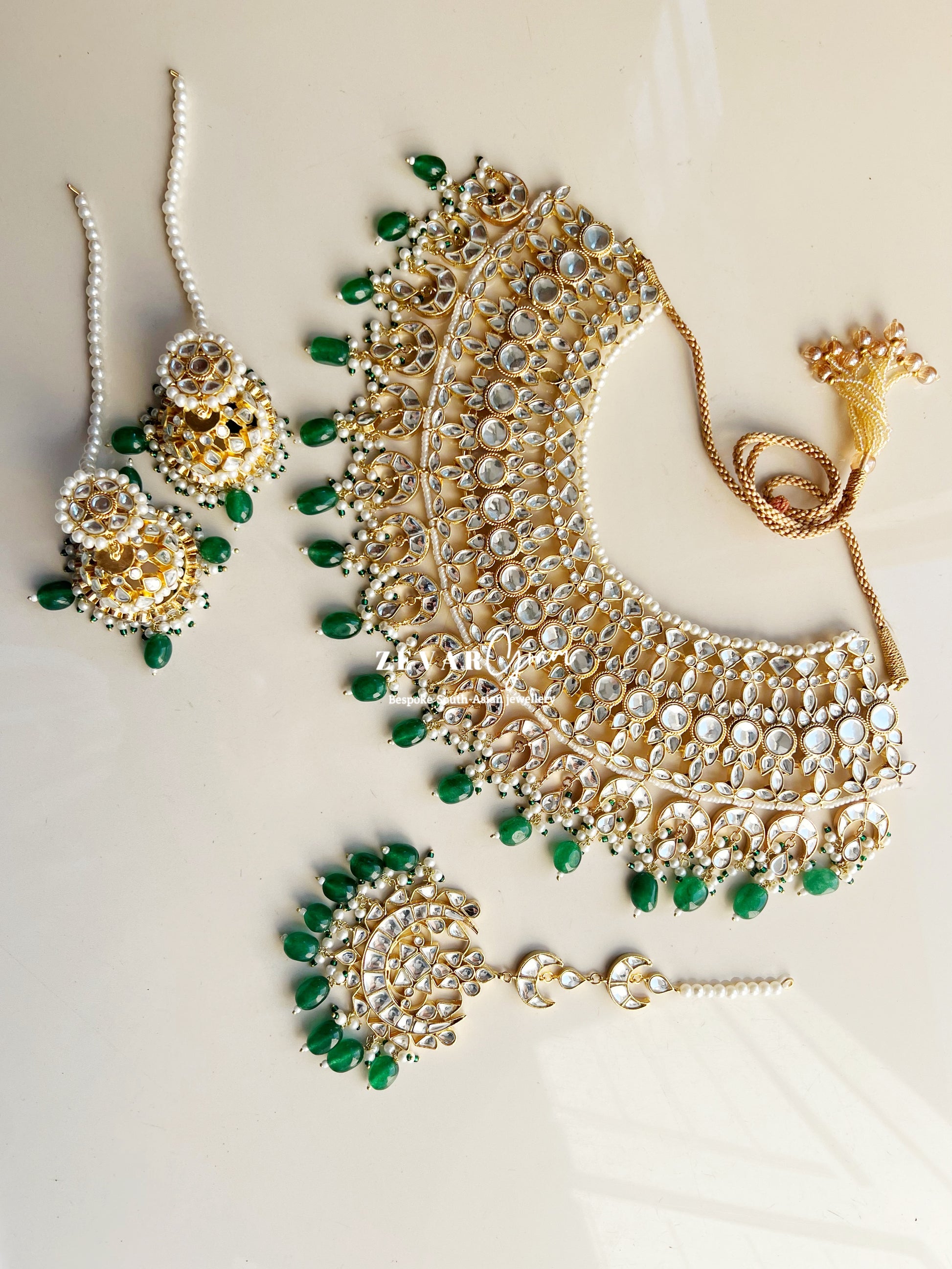 Handcrafted by our our experienced artisans in Farshi kundan using gold plated brass embellished with pota stones and embellished with semiprecious beads.