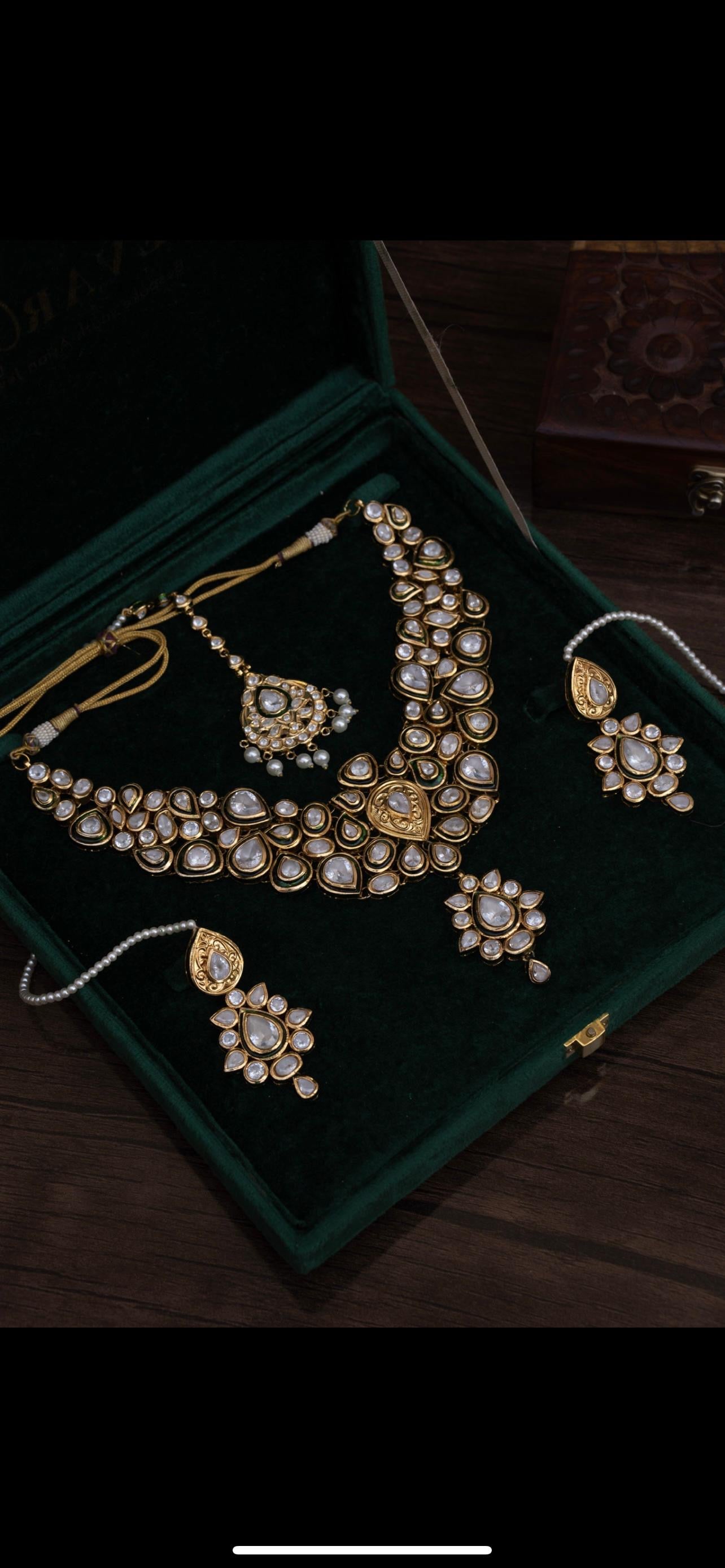 Exquisitely handcrafted polki necklace set by our experienced artisans , embellished with zircon stones and enamelled with meenakari work.