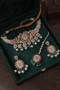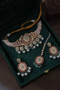 Exquisitely handcrafted polki choker, embellished with zircon stones and enamelled with finest meenakari work.