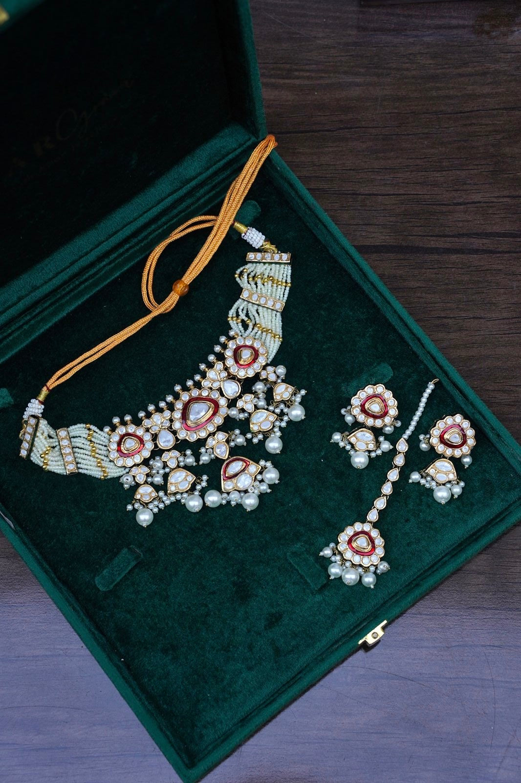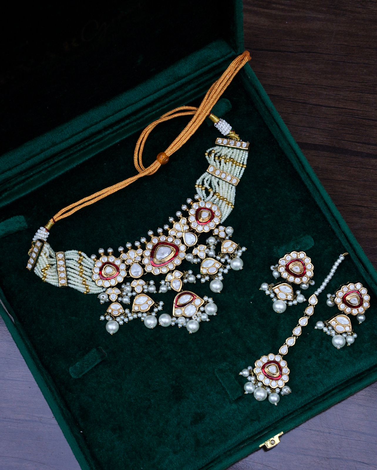 Exquisitely handcrafted polki choker, embellished with zircon stones and enamelled with finest meenakari work.