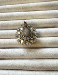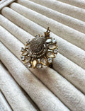 Adjustable size American diamond and polki fusion ring in antique finish.